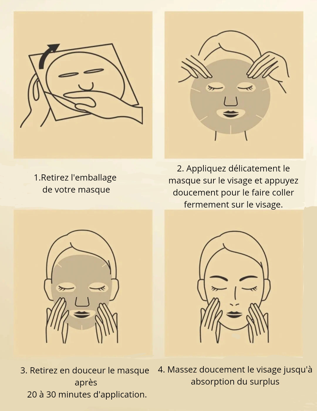 2. Après avoir ouvert l'emballage, veuillez appliquer immédiatement le masque facial.